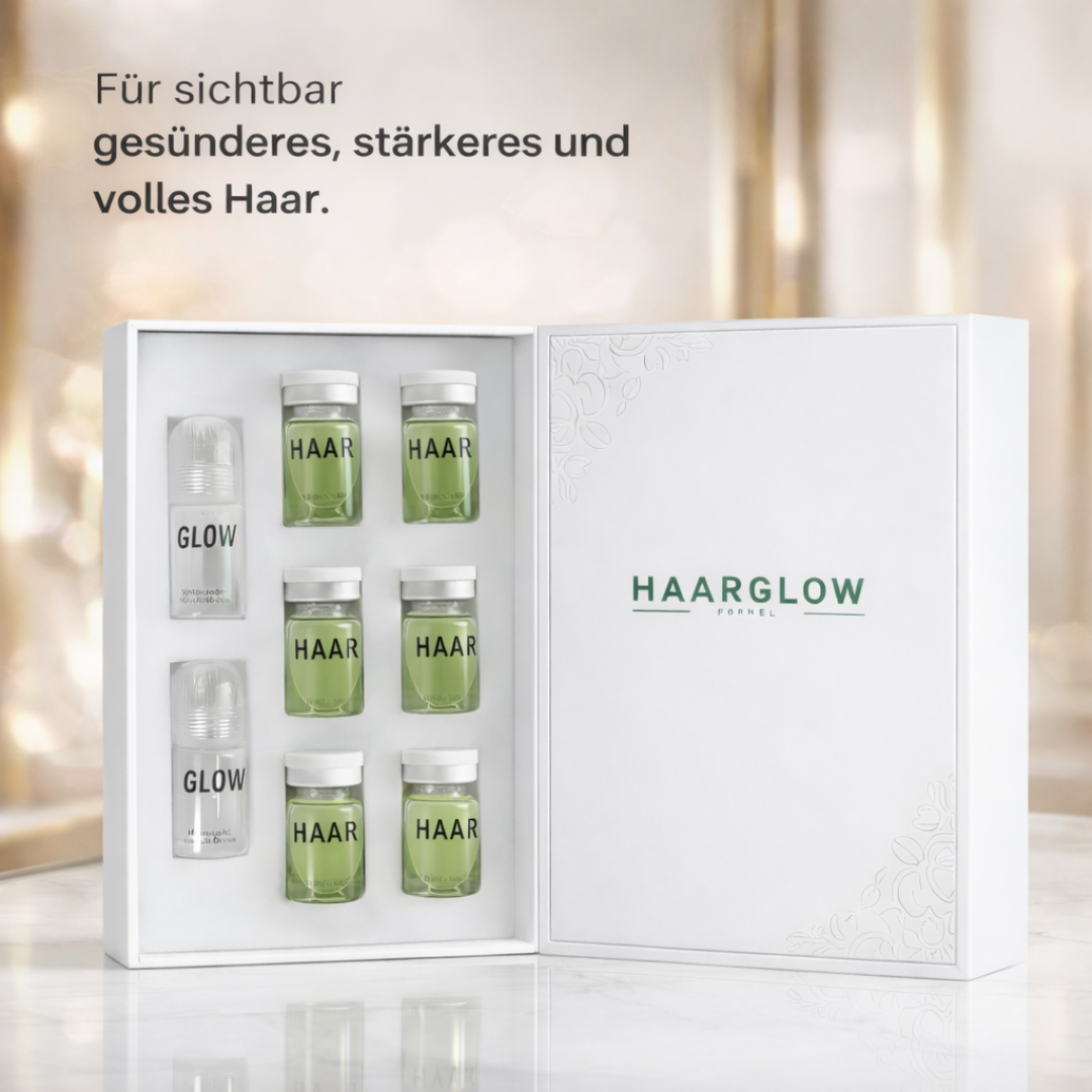 Glow Drops bringen Wirkstoffe dorthin, wo sie gebraucht werden – nicht auf die Oberfläche, sondern zu den Wurzeln. Ohne Klinik. Ohne Wartezeit. In 5 Minuten zu Hause.